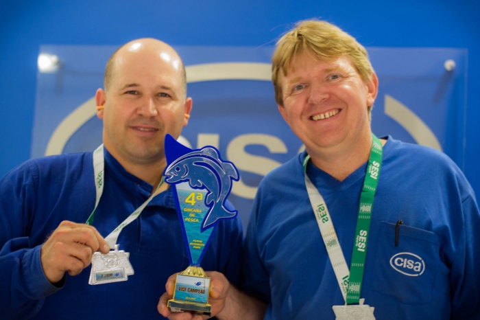 Os funcionários Gilberto Albrecht, do setor Calderaria, e Marcelo Voigt, também da Calderaria, foram os vice-campeões do 4º Torneio de Pesca promovido nas lagoas do Perini Business Park, em 22 de novembro.